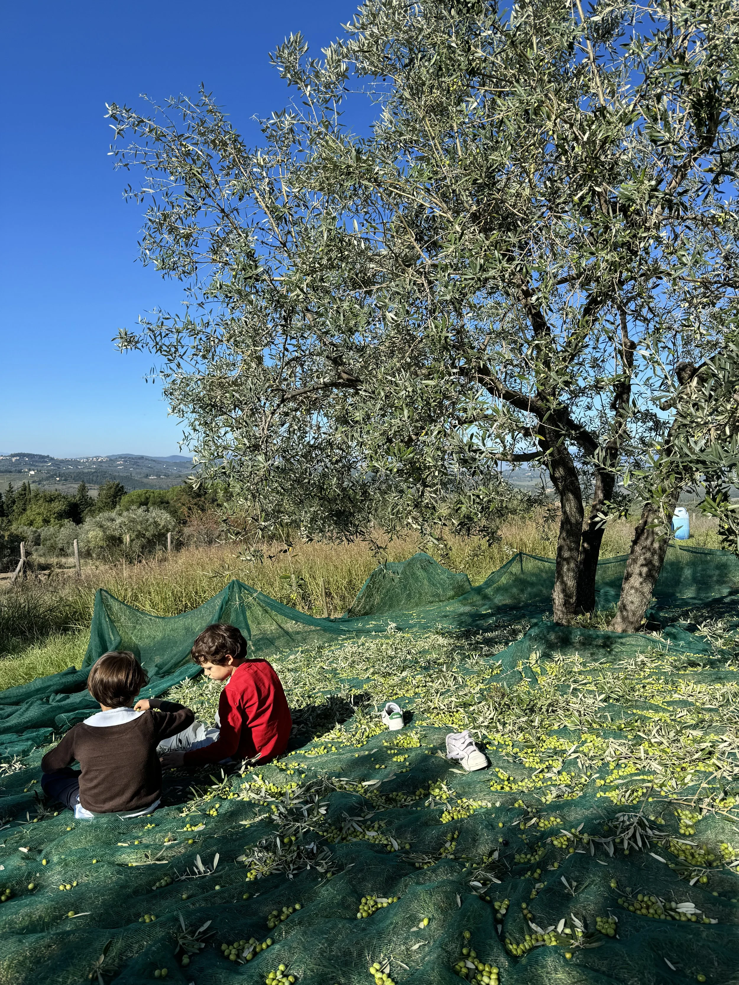 November 1st marks the start of olive picking in Chianti. The air is crisp, carrying the scent of earth and tradition. The boys, dressed like Florentine knights, take their roles seriously—until Nonna, ever watchful, warns them with a wag of her finger: Ragazzi! Attenzione! Do not smash the olives!