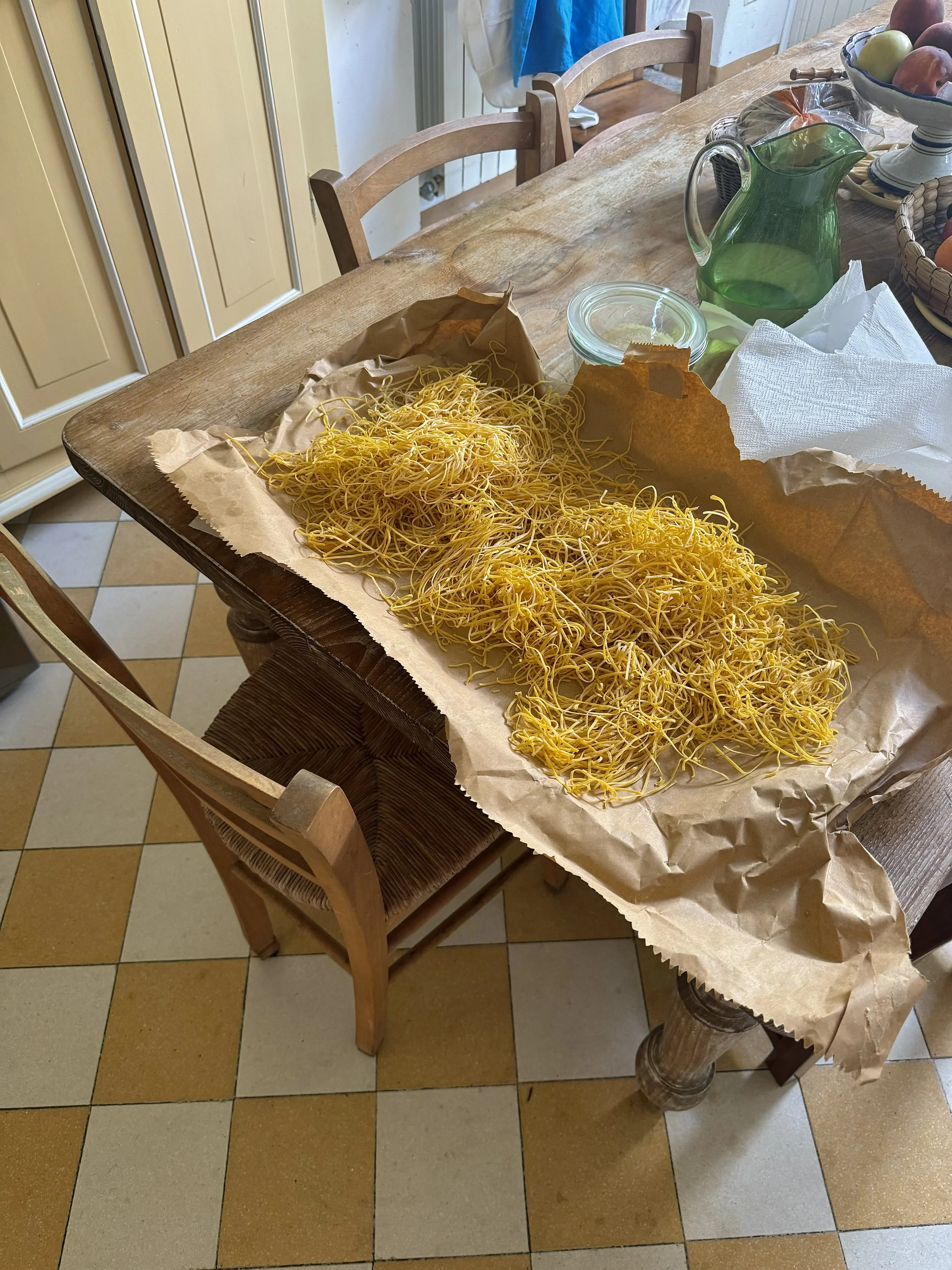 Fresh pasta delivered from the neighboring Nonna in the village.
