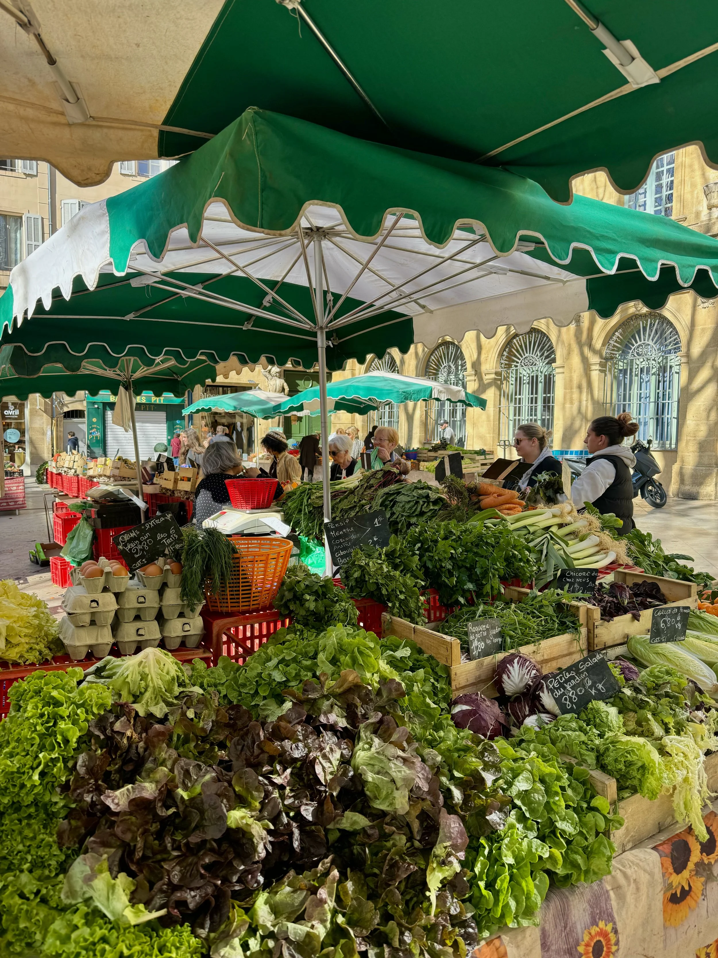 Taking the train from Nice to Aix-en-Provence felt like stepping into a different rhythm. The city had a youthful energy: full of students, movement, and lightness. I met my friend at a bar, where she welcomed me with an iced glass of Ricard. After catching up, we wandered through the local markets, picking out fresh fish and vegetables for dinner.